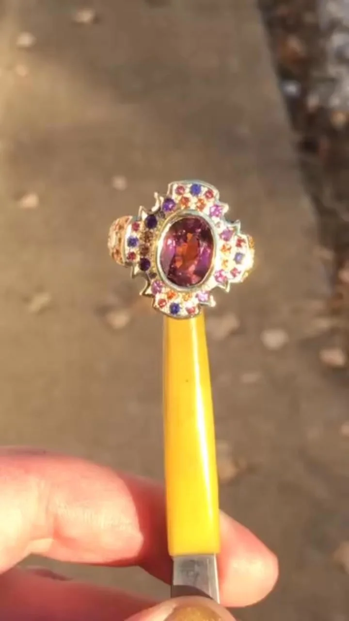 The wax model has been approved, the casting metal grain is in hand, the wax has been molded in investment plaster, and it has undergone the burnout cycle in the kiln. Your custom jewelry is ready to be cast! I do all my own silver and gold casting in house. Platinum casting is one of two processes I do not currently do, but I have the good fortune of access to the top platinum casters in the nation. Once your piece is cast, I will send you photos of the raw casting. After filing, sanding, polishing, engraving, and stone setting, the final finishing touches are applied and the piece will be complete. I will send you a variety of photos of the finished piece, as many as needed for you to be confident in receiving the ring.
